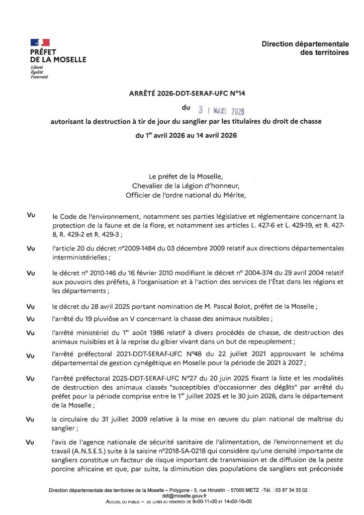 Arrêté 2026-DDT-SERAF-UFC n°14