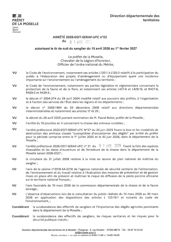 Arrêté 2026-DDT-SERAF-UFC n°22